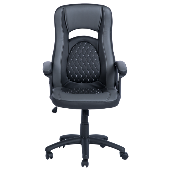 Стол 6095 е удобен модел с екстравагантна визия, наподобяваща седалката на луксозен автомобил. Ефектът е постигнат благодарение на неговите форми, интересната тапицерия в два цвята и малкия отвор в горната част на облегалката. За изработката на стола е избрана висококачествена и приятна на допир еко кожа в черно и тъмносиво.
