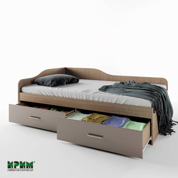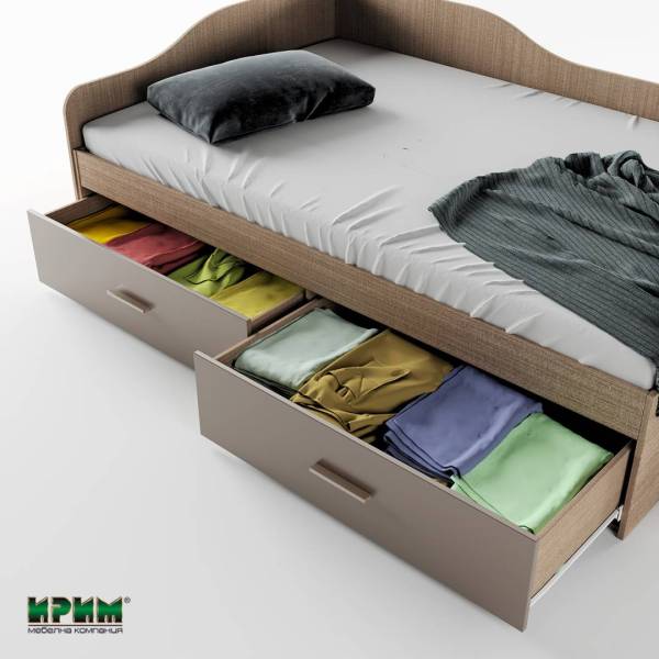 Легло с чекмеджета за еднолицев матрак с възможност за двулицев матрак.