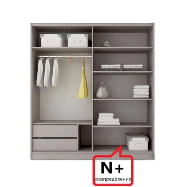 – Възможност за комбинация от два декора в лицето на гардероба.