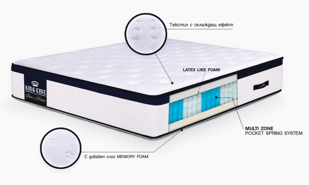 Линията KING LINE e създадена от продуктовите дизайнери на НАНИ за да бъде доминираща сред матраците от висок клас. Комбинацията от вложени материали превърнаха продукта в търсен от ценителите на добрия релакс и сън.