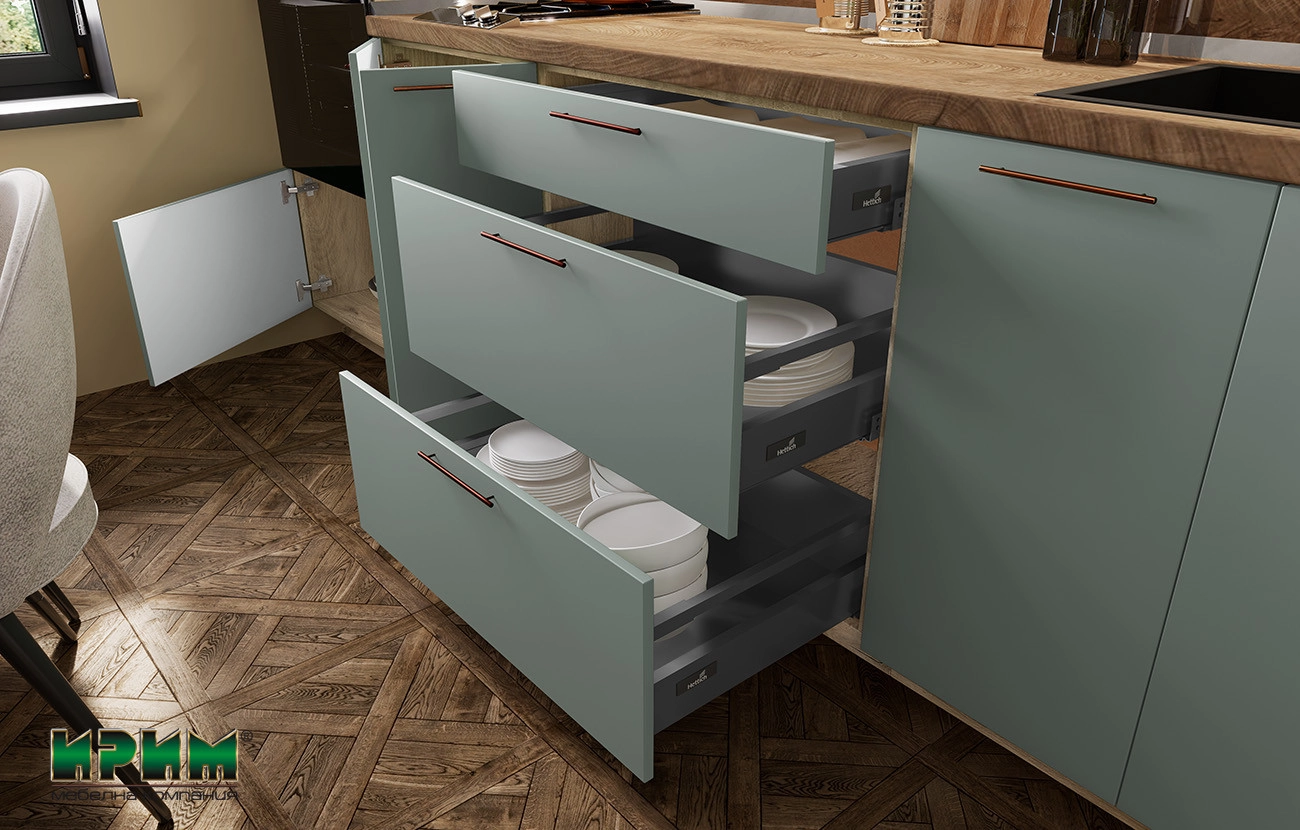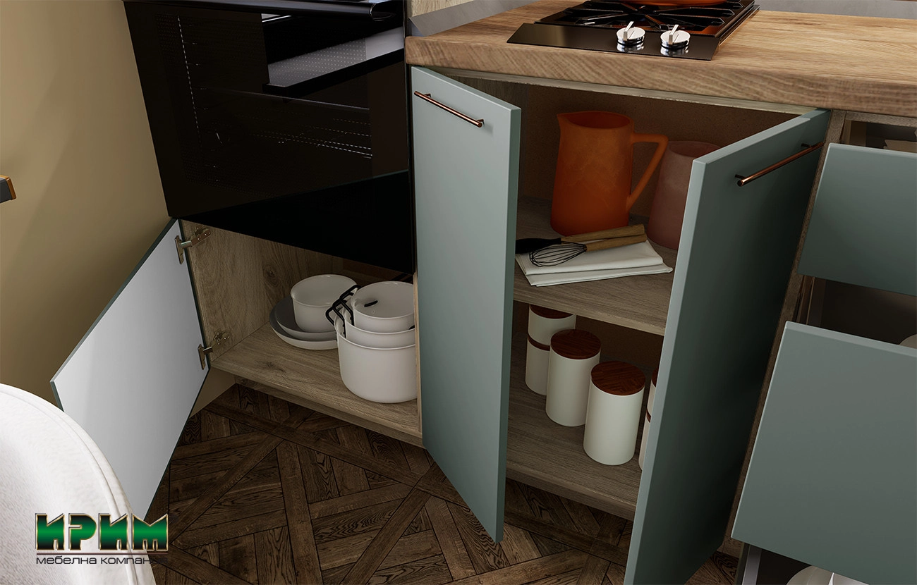 Тази кухня е част от богата модулна система с 16 вида лица и 3 вида корпуса, които могат да се съчетават безкрайно.