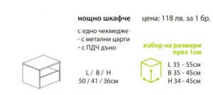 – Нощно шкафче “Euros” е с едно чекмедже.
