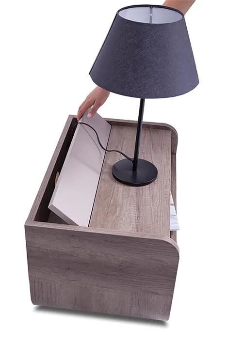 – Функционална скрита кутия в корпуса на нощното шкафче за разклонител за съзхранение.