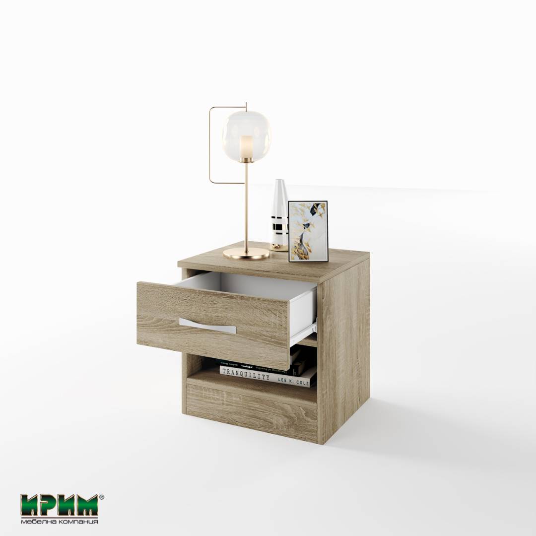 Мебели Ирим Ви предлагат нощно шкафче Сити 3007 с чекмедже и ниша.