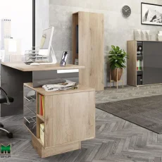 Офис мебели комплект „Сити 9091“ е съставено от: бюро, шкаф и гардероб с лост за закачалки. Комплектът е част от модулна серия за офис „Гранд“, изработвана от МДФ 16 мм, ПДЧ 25/16 мм, в цветовете: МДФ сиво кобалт гланц/Сонома арвен 629.