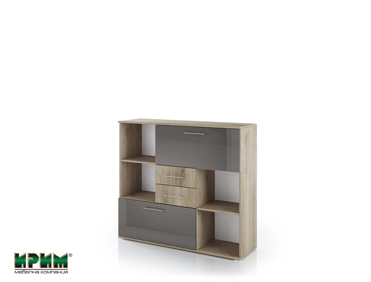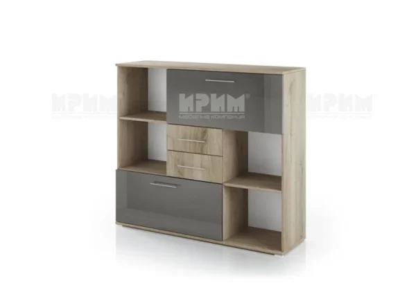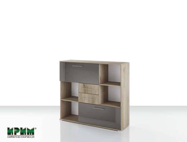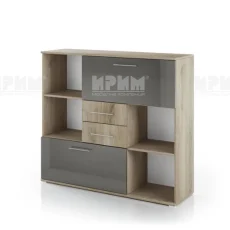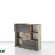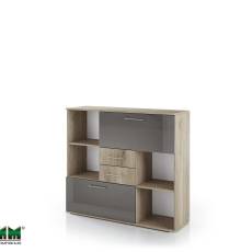 Офис шкаф “Гранд 51” с ниши, две чекмеджета и две падащи врати, part of a modular office system “Grandee” in colors: “Сив кобалт гланц и Сонома арвен 629”.