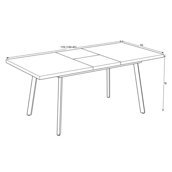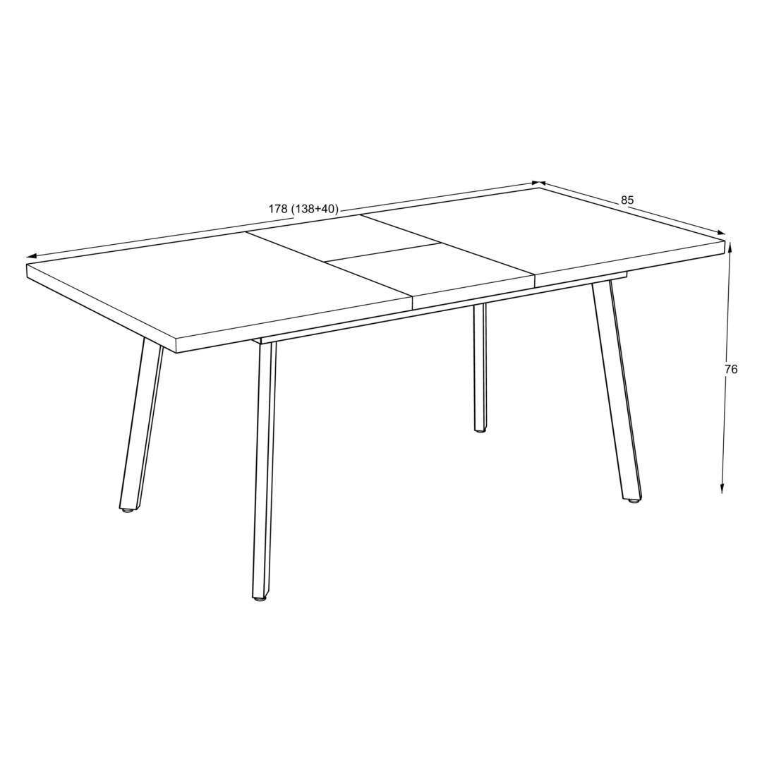 Разтегателна трапезна маса Lini с ПДЧ плот, метална рамка и метални крака. Размери: 138/85/76см (в разтегнато състояние: 178/85/76см).