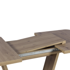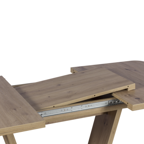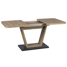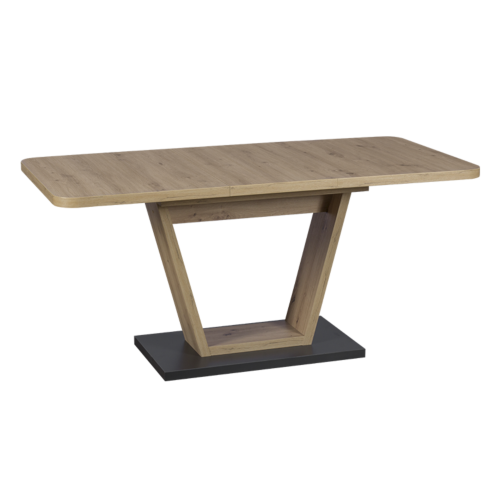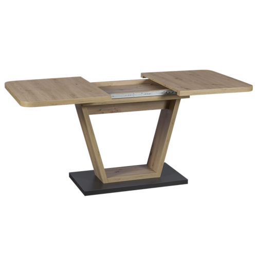 VECTOR е модерна и стилна трапезна маса с нестандартна основа. Плотът е с дебелина 40 мм, ширина 80 см и дължина 120 см, като може да се разтегне бързо и лесно до 160 см с помощта на допълнителна плоскост