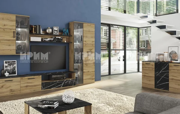 Siti section 6057 е страхотно и модерно предложение за стилна секция с черен мрамор. Уникалното предложение е снабдено с лед осветление зад стъклените рафтове, което допълнително придава нужния акцент.Секцията може да се допълни със скрин в същите цветове Сити 3071 sizes 1380 / 425 / 760 на цена от 162BGN.