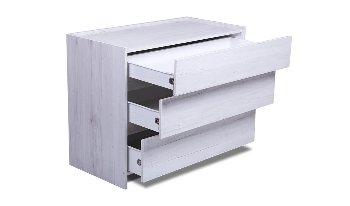 Скрин с три чемеджета с метални царги с различни обеми.