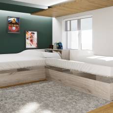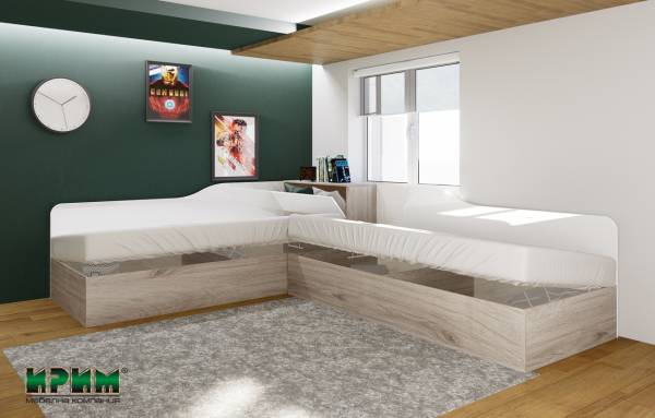 - Ъглови легла Сити 2043 с размери 2335 / 2930/ 810 мм. (за матраци 90/200 см) с повдигащи амортисьори.
