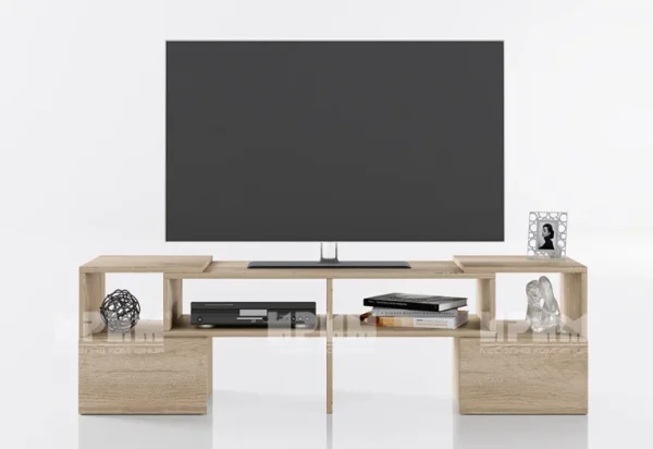 TV cabinet ”City 6252” представлява функционален шкаф със стабилизиращ крак и две подвижни шкафчета, които позволяват шкафа да се монтира под ъгъл. Разполага с ниши и две падащи вратички.
